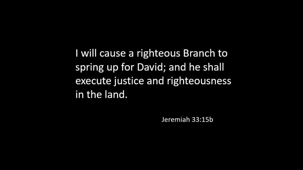 14 The days are surely coming, says the Lord, when I will fulfil the promise I made to the house of Israel and the house of Judah. 15In those days and at that time I will cause a righteous Branch to spring up for David; and he shall execute justice and righteousness in the land. 16In those days Judah will be saved and Jerusalem will live in safety. And this is the name by which it will be called: ‘The Lord is our righteousness.’