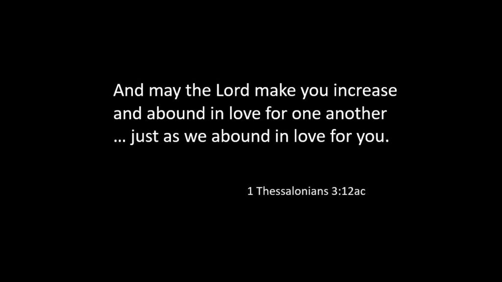 12And may the Lord make you increase and abound in love for one another and for all, just as we abound in love for you. 13And may he so strengthen your hearts in holiness that you may be blameless before our God and Father at the coming of our Lord Jesus with all his saints.