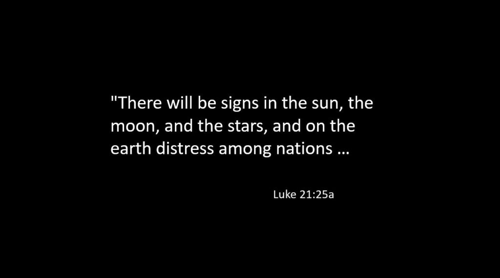 25 ‘There will be signs in the sun, the moon, and the stars, and on the earth distress among nations confused by the roaring of the sea and the waves. 26People will faint from fear and foreboding of what is coming upon the world, for the powers of the heavens will be shaken. 27Then they will see “the Son of Man coming in a cloud” with power and great glory. 28Now when these things begin to take place, stand up and raise your heads, because your redemption is drawing near.’